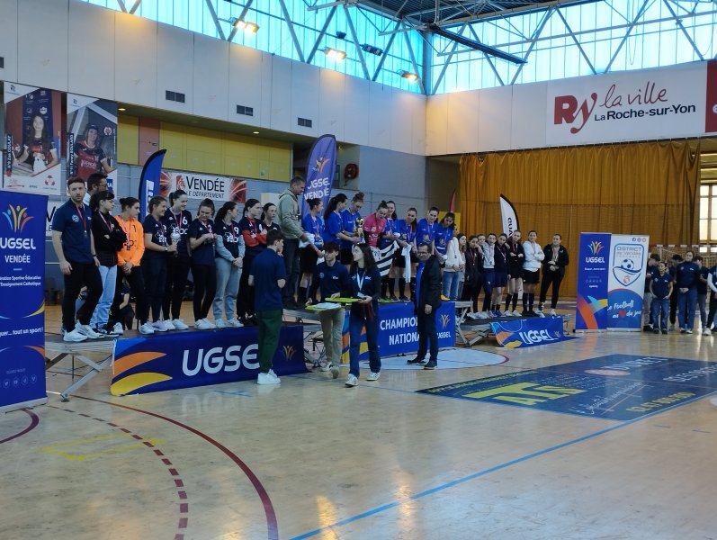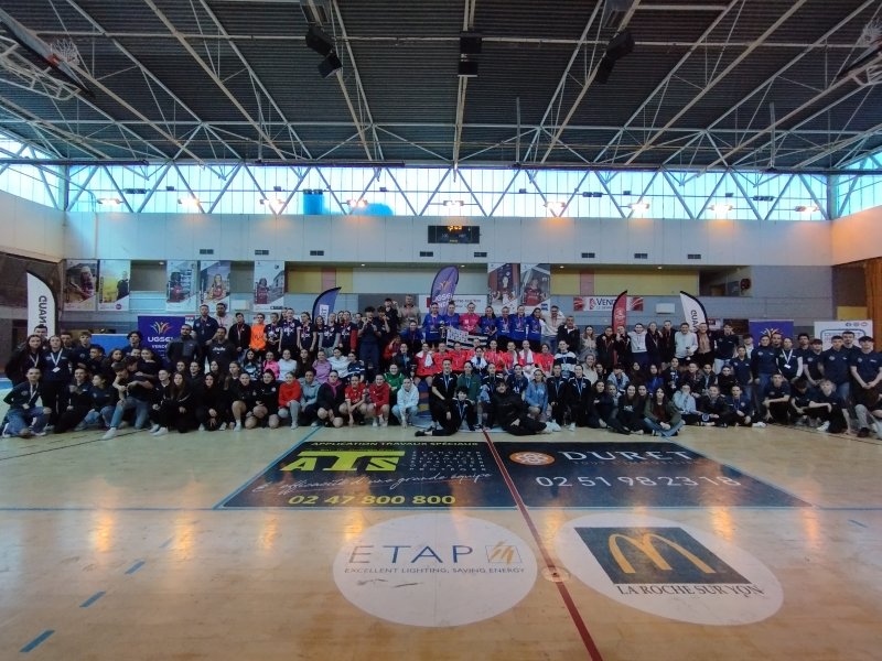 Le lycée Notre Dame du Roc a eu la chance d’accueillir le championnat national de futsal Cadettes/ Juniores à la Roche sur Yon, du 3 au 5 avril 2023. 11 équipes féminines, venues de toute la France, se sont réparties en 3 poules pour s’affronter et aussi s’encourager. 2 salles de la Roche sur Yon ont été mises à disposition pour l’organisation de cette compétition ; merci à la Ville.