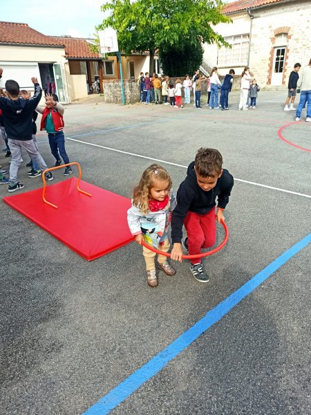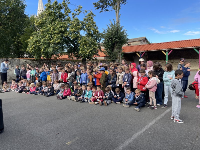 Et également au RPI de Boulogne- La Merlatière, Matthieu raconte : « Nous avons vécu notre temps fort de rentrée le mardi 23 septembre à l’école de Boulogne. Ce fut un moment de partage et de convivialité entre tous les élèves du RPI. Nous avons randonné jusqu’à l’école maternelle de Boulogne, puis chanté et participé à l’activité ludique autour du thème “Bouge avec les régions”. Petits et grands ont vraiment apprécié cette expérience. »